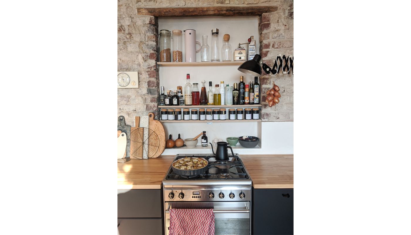 Als Anne und Jens ihre jetzige Wohnung das erste Mal betraten, war ihnen sofort klar: Das ist sie. Die offenen Backsteinwände, die Liebe zum Detail, das helle Licht – sie konnten sich sofort mit ihren Freunden und Familien in der Wohnung sehen, wussten gleich, welche Möbel wo stehen sollten. Alles ergab sich wie von selbst. Nur die Küche war ein Kampf: Einen Monat hat es gedauert, bis sie fertig war. Doch Anne und Jens haben sich von Baustellen noch nie unterkriegen lassen.